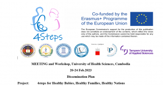 University of Health Sciences (UHS) hosted the 4Steps teams from Finland, Slovenia and Vietnam in Phnom Penh, Cambodia in February for another memorable event. Dissemination of all the outcomes of the project were discussed and plans were made how to reach the midwife educator and student communities. Everyone will participate in sharing evidence based practices and help for it to take root. There are many things we can do to enhance midwifery, even with low resources. Attitude counts most and that is an important aspect of a project like this. What can we do now? Even the smallest steps to help families are important and each one counts. It can also make the work easier, better, and even more fun!