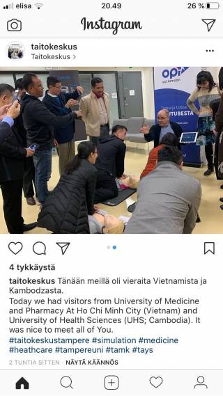We visited two skills training sessions – childbirth outside the hospital and how to care for a newborn during the first hours after birth. We also made study visits to Tampere Centre for Skills Training and Simulation, the new University hospital and the public health care maternity clinic. We also learned about health care in Finland.