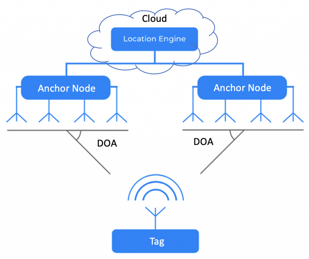 The direction of arrival (DOA) of radio signals denotes the direction from which a radio wave reaches a set of antennas also known as antenna arrays. In the DOA terminology, the tag is a device that transmits radio signals to other devices that have an antenna array called anchor nodes. In the case of indoor positioning systems, the estimation of DOAs is an intermediary step to calculate the position of tags. Figure 1 depicts the main devices in DOA-based indoor positioning systems.