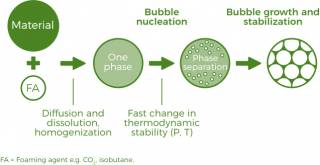 BeLight-projektissa valmistetaan biopohjaisia polymeerivaahtoja kahdella teknologialla: ekstruusiovaahdotuksella ja partikkelivaahdotuksella. Alla on esitetty termoplastisen vaahdotuksen periaate: