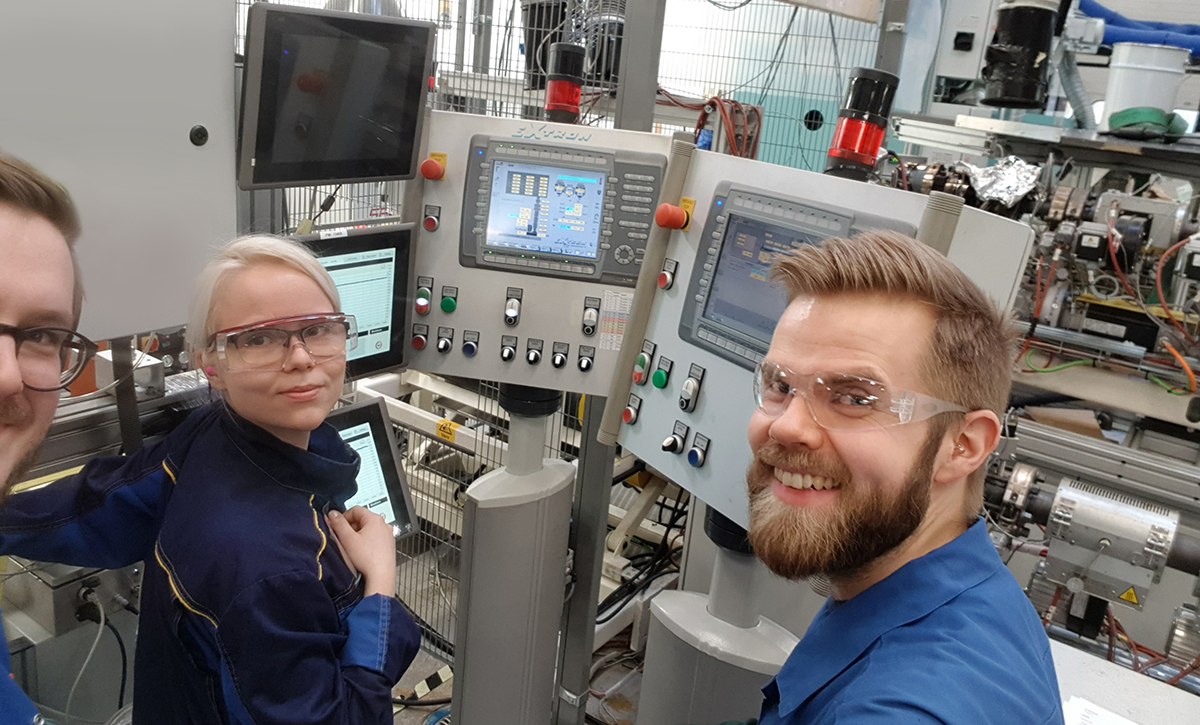 Laboratoriomittakaavan ekstruusiovaahdotuslinja