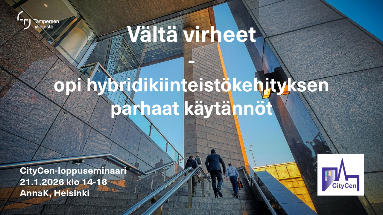 Tervetuloa kuulemaan tuloksia CityCen-hankkeesta, joka on syventynyt laajojen ja monitoimisten hybridikiinteistökehityshankkeiden toteutusmalleihin, AnnaK:n Huippuun 21.1.2026 kello 14–16!