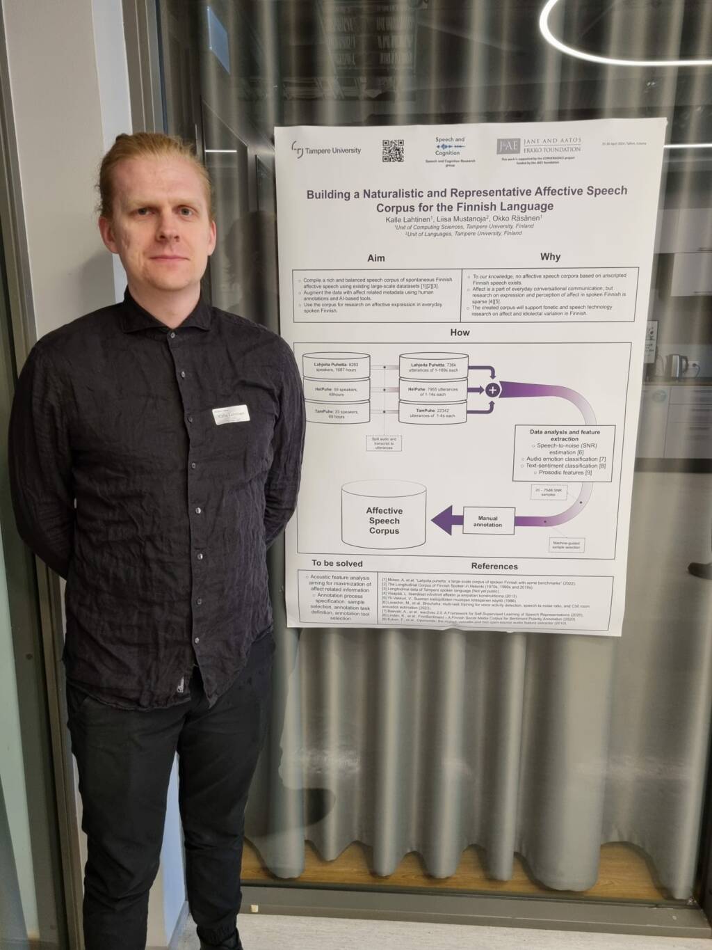 CONVERGENCE’s Kalle Lahtinen presented a poster about the first steps in his research under the topic “Building a Naturalistic and Representative Affective Speech Corpus for the Finnish Language”.