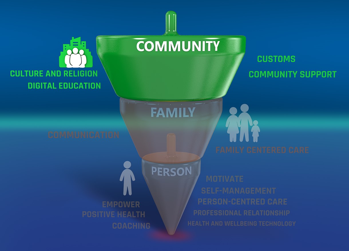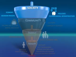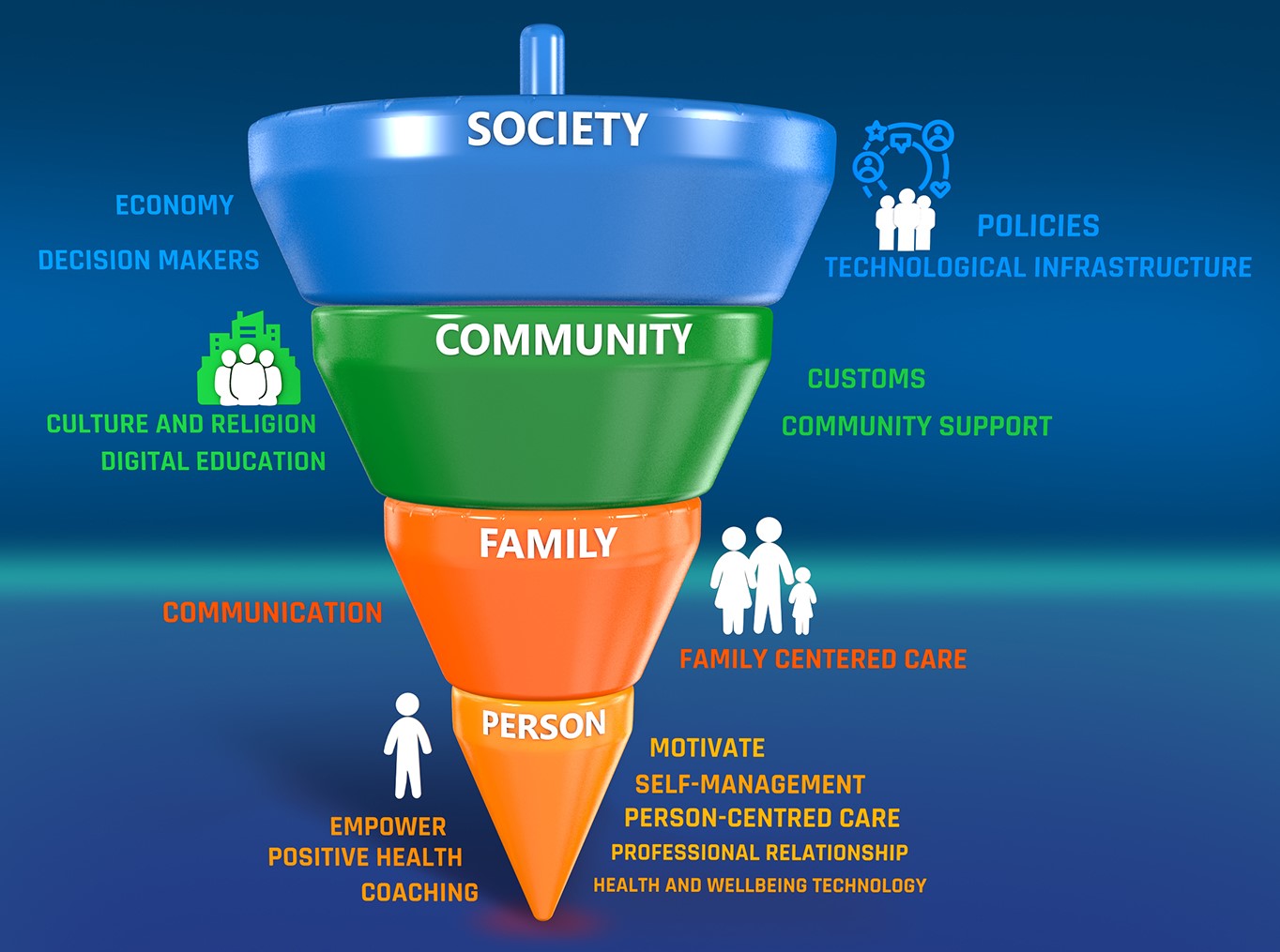 Figure. Illustration of the DigiCare Model and its four layers and key concepts.