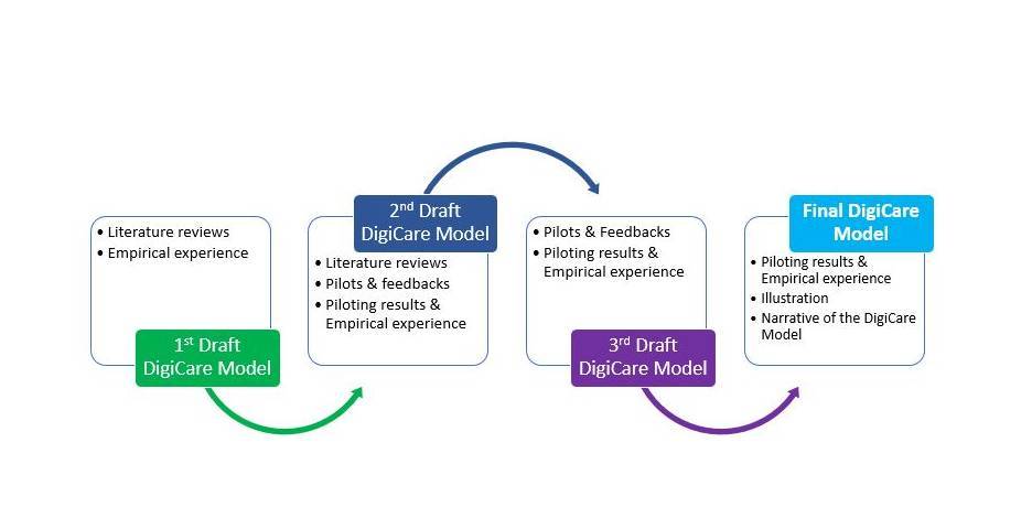 The foundation of the DigiCare Model is based on the results of literature reviews of best practices and current research in the field as well as on the needs analysis and empirical knowledge by the local experts. The designing process utilized active and innovative methods of constructing the synthesis and consensus of the work by DigiCare consortium experts.