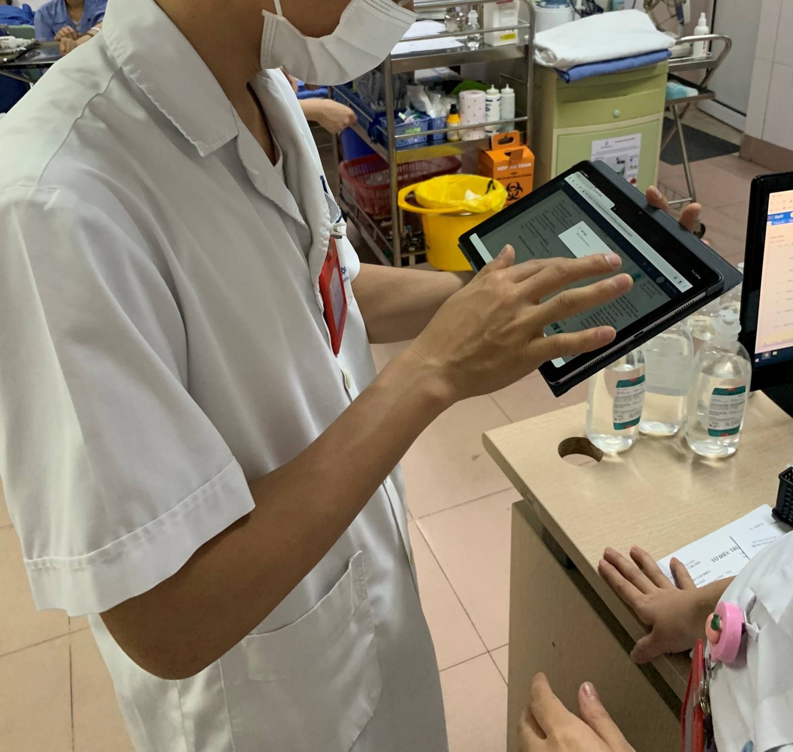 In Nam Dinh University of Nursing (NDUN), the equipment items were installed in the Digital classroom on the fifth floor of NDUN’s simulation center in September 2021. They were used for training students on the DigiCare model and coaching practices during the first and second student pilots. The Digital training classroom will continue to be utilized for simulation teaching and learning in the future.