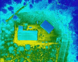 Rakennusten tarkastelussa dronejen lämpökameraominaisuudet ovat erityisen ajankohtaisia nyt, kun rakennusten energiatehokkuuteen ja eristävyyteen kiinnitetään entistäkin enemmän huomiota. Lämpökameran avulla voidaan paikantaa ilmavuotokohtia, lämmöneristeiden puutteita, kylmäsiltoja ja toisinaan jopa kosteusvaurioituneita rakenteita. Lämpökuvauksella voidaan myös tarkastella teknisten laitteiden toimintaa ja kuntoa. Dronella tehtävässä kontaktittomassa lämpötilamittauksessa tarkastellaan mitattavan kohteen sähkömagneettisen spektrin infrapunakaistaa. Prosessia kutsutaan infrapunatermografiaksi (IRT). On hyvä huomioida, että lämpökameralla havainnoidaan nimenomaan lämpöä, kohteen valaisulla ei ole vaikutusta mittaustuloksiin. Seuraavaksi tarkastelemme muutamia droneilla tehtäviin rakennusten lämpökuvauksiin keskeisesti liittyviä seikkoja. Kirjoituksen ohessa olevan valokuvat on otettu hankkeemme omalla dronella.