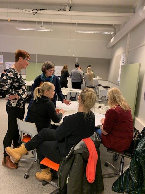 Työpajassa projektipäällikkö Sari Himanen kertoi hankkeen taustoista, tavoitteista ja etenemisestä. Tämän jälkeen osallistujat jaettiin ryhmiin pohtimaan työssä vastaan tulevia asioita ja sisältöjä sekä miettimään, miten niitä voisi diMes –sovelluksessa tuoda esille. Asiaa tulikin paljon ja jutustelua tuntui riittävän. Nämä ideat vielä koottiin yhteen ja niistä keskusteltiin yhteisesti.