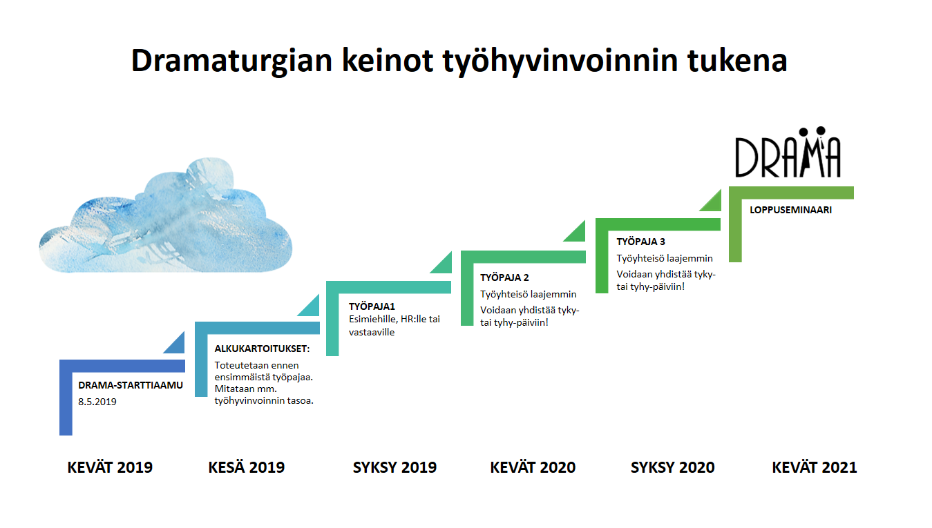 - SYKSY 2019. DRAMA starttiaamu II 21.8. Räätälöidään kullekin yritykselle sopiva toteutustapa. Tehdään alkukartoitukset yrityksissä.