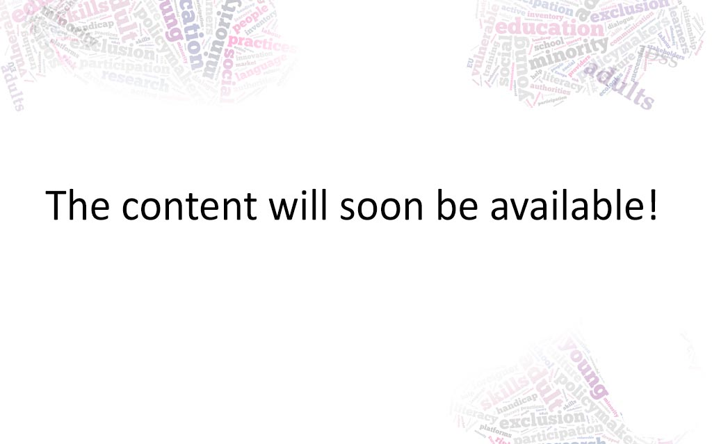- Low literacies (including media and information literacy) and lack of competences for formal communication, such as finding adult education (AE) opportunities from internet without help or mediating support;