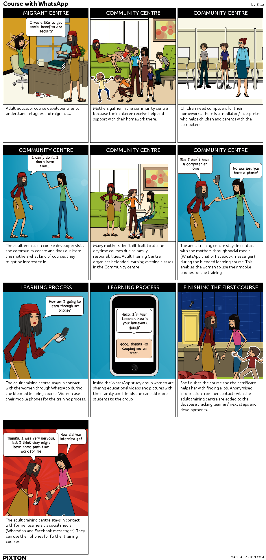 The interaction scenarios were described using the visual approach, accompanied with the narrated design pattern approach developed by Alexander (1977). In the pattern approach each design solution is stated in such a way that it gives essential field of relationships needed to solve the problem, but in a very general and abstract way – the patterns should be used in local contexts by adapting them to local conditions (see the examples below). For a more thorough discussion of the scenarios and the communication design, read the whole report here.