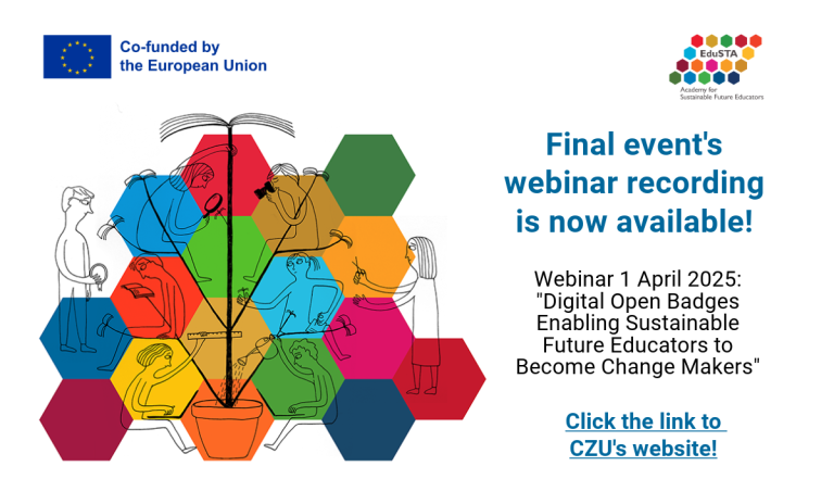 Join EduSTA webinar on 1 April 2025 at 14–16 CET: Digital Open Badges Enabling Sustainable Future Educators to Become Change Makers