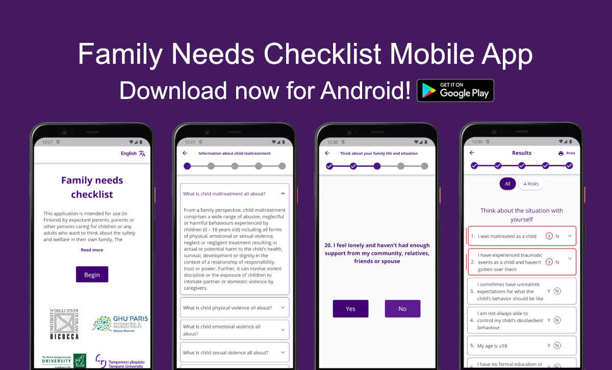 A mobile app identifies factors linked to child maltreatment and guides to sources of support