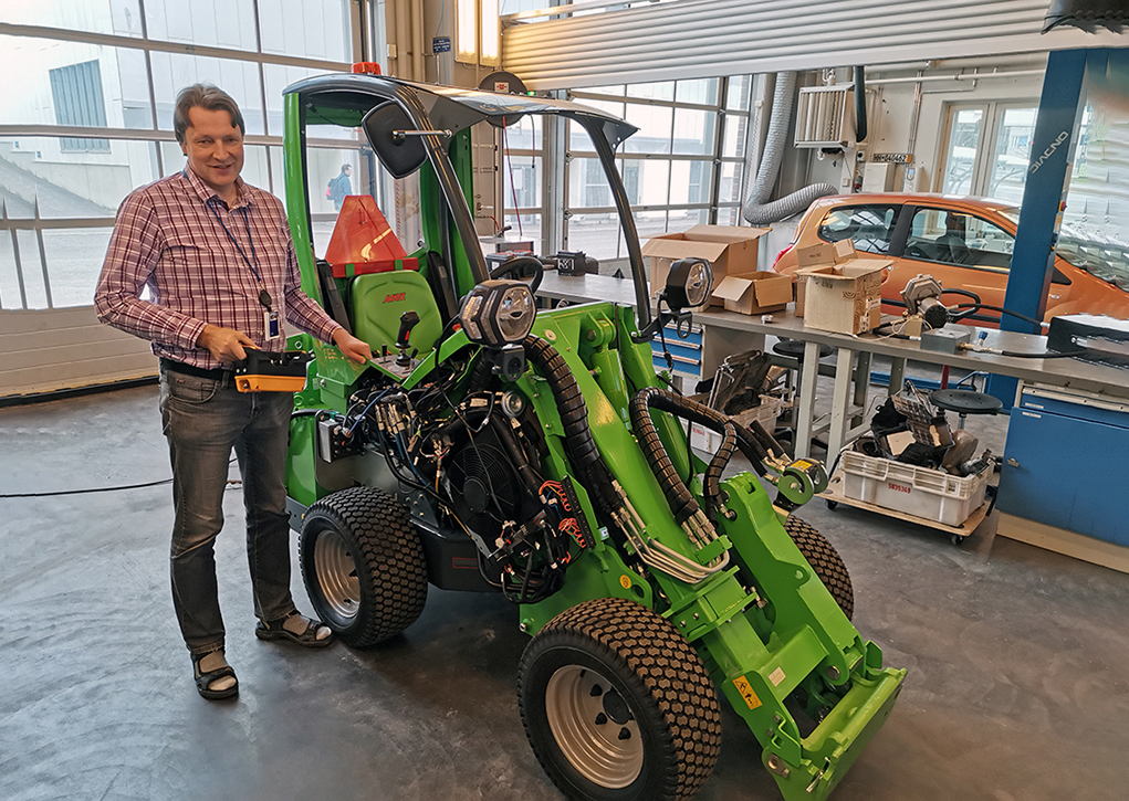 Autolaboratorion tiloissa kiiltelee uudenkarhea Avantin kuormain. Tampereen korkeakouluyhteisön eSmart Machines -hankkeen projektipäällikkö, yliopettaja Mika Ijas iloitsee siitä, että hankkeen ansiosta on saatu ajantasaista ja tarpeellista laitteistoa yritys- ja opetuskäyttöön.