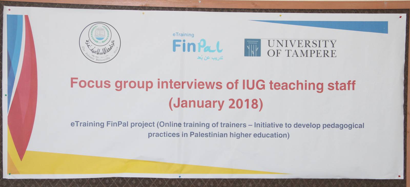eTraining FinPal project team organised and conducted four focus group interviews with IUG teaching staff in January 2018. The aim of the interviews was to collect qualitative data about learning, teaching and educational development at IUG. The qualitative data enrich the previously collected survey data and together they contribute to better understanding of the situation at IUG, provide basis for development of the training programme, and provide material for joint research publications.