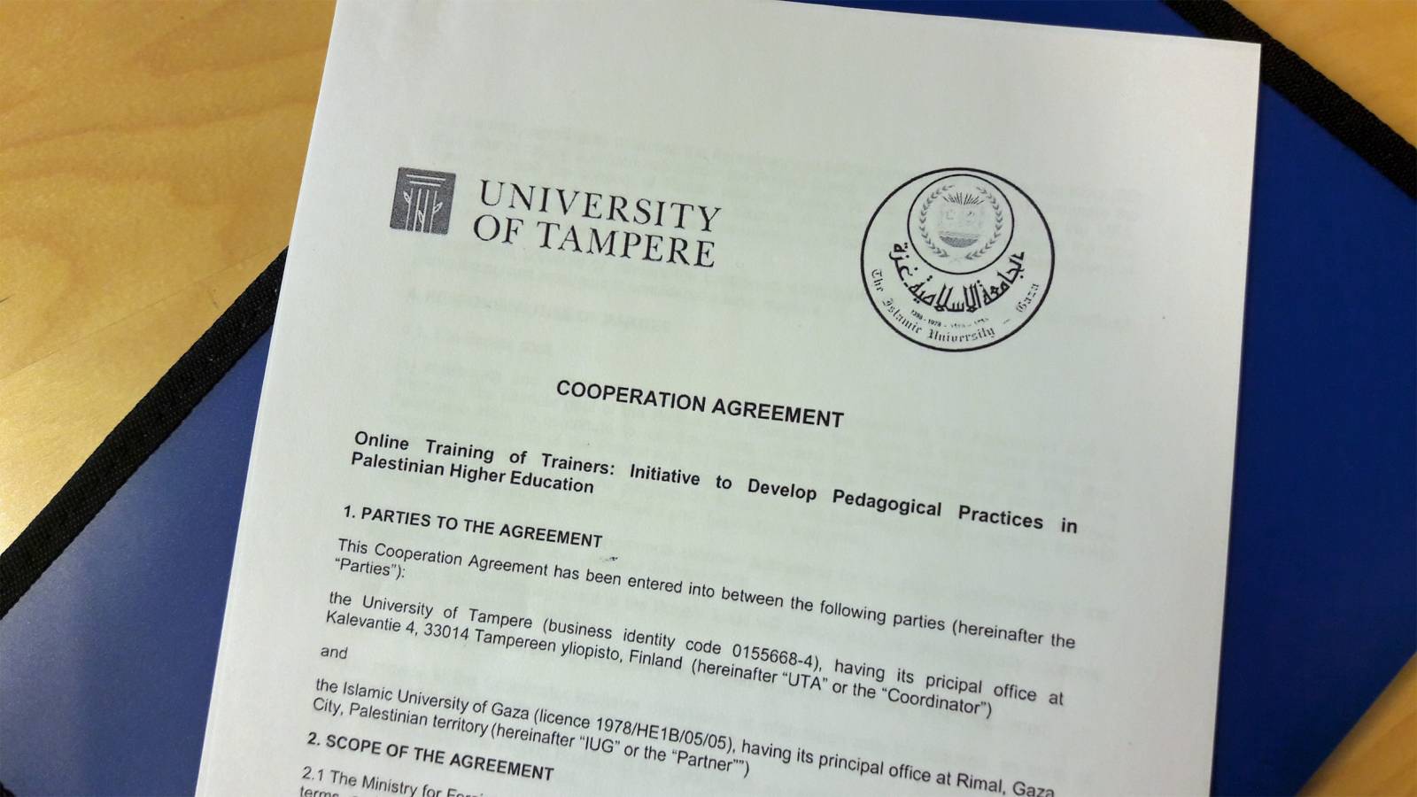 eTraining FinPal cooperation project continues with the beginning of autumn semester. During August UTA and IUG teams have finalized the institutional Agreement that outlines the future cooperation between Islamic university of Gaza and University of Tampere.
