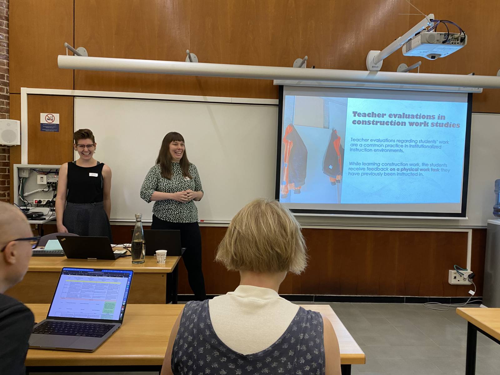 First, we went south, all the way to Spain. At ICOP-L2 in Barcelona – the conference for interactional competence and practices in a second language – we met colleagues with whom we share an interest in studying second language learning as a social practice. Here we were in excellent company to discuss using conversation analysis to learn more about the development of interactional competence in- and outside the classroom, in our case while learning manual skills needed for construction work. The shared theoretical and methodological interests gave us plenty of common ground that showed, for example, in the quality of comments and suggestions our presentations got for future directions. In addition, our PI Niina Lilja inspired all the conference attendees with her plenary talk “Monitoring and guiding recipient’s visual attention in instructions for manual actions”.
