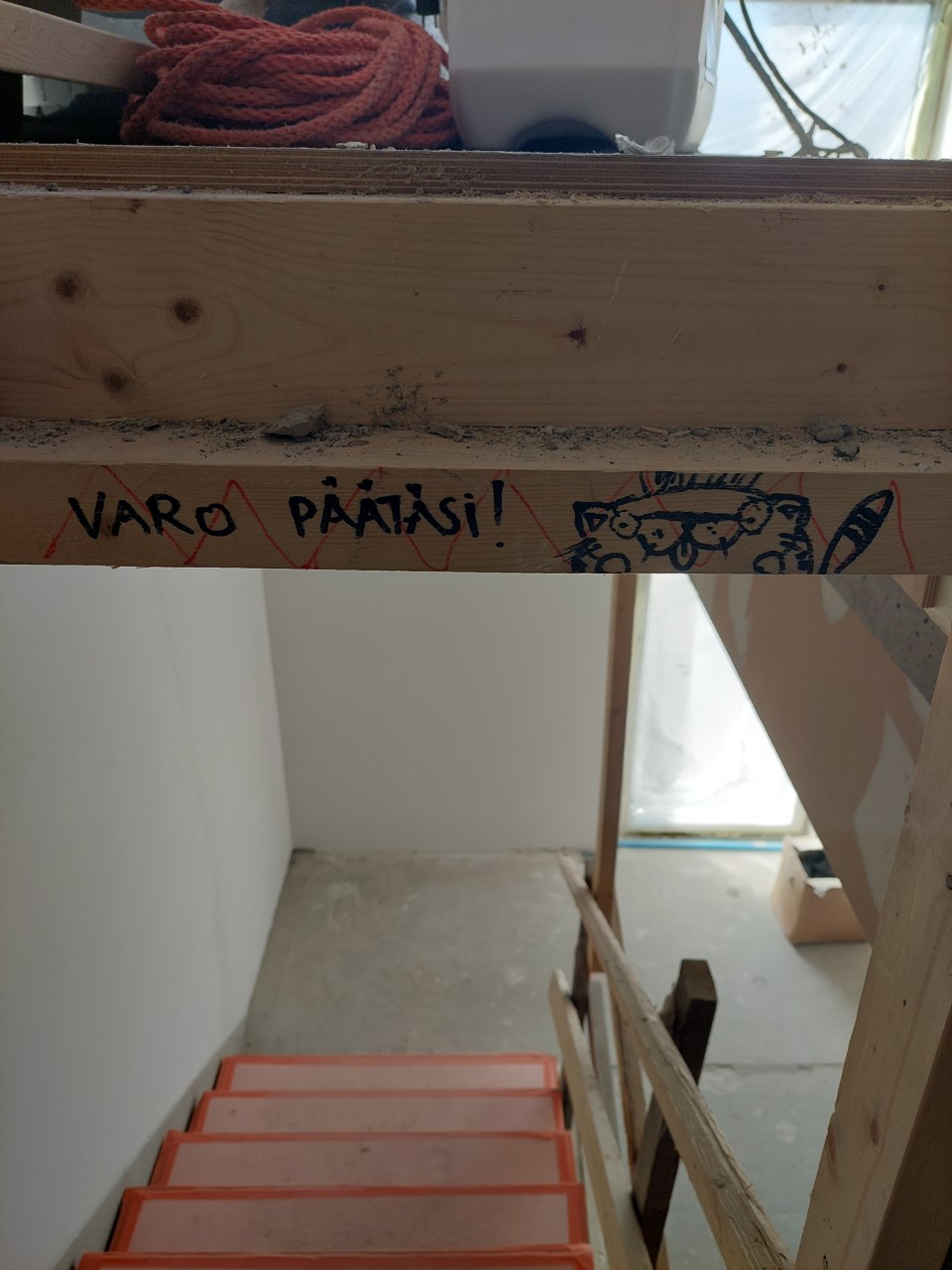 This year’s Finnish conference of linguistics (Kielitieteen päivät) was organized as an on-site event at the university of Turku. As encouraged by the organizers, we approached the conference’s theme – contacts, corpora, and variation – open-mindedly and creatively, which led us to look at our data a bit differently from how we usually do. In our presentation “Emergent texts: instructing work practices at construction sites” we explored new avenues. This time, we did not focus on our video-recorded data of workers accomplishing different tasks, but instead on the linguistic landscape that constantly surrounds the people at the worksite.
