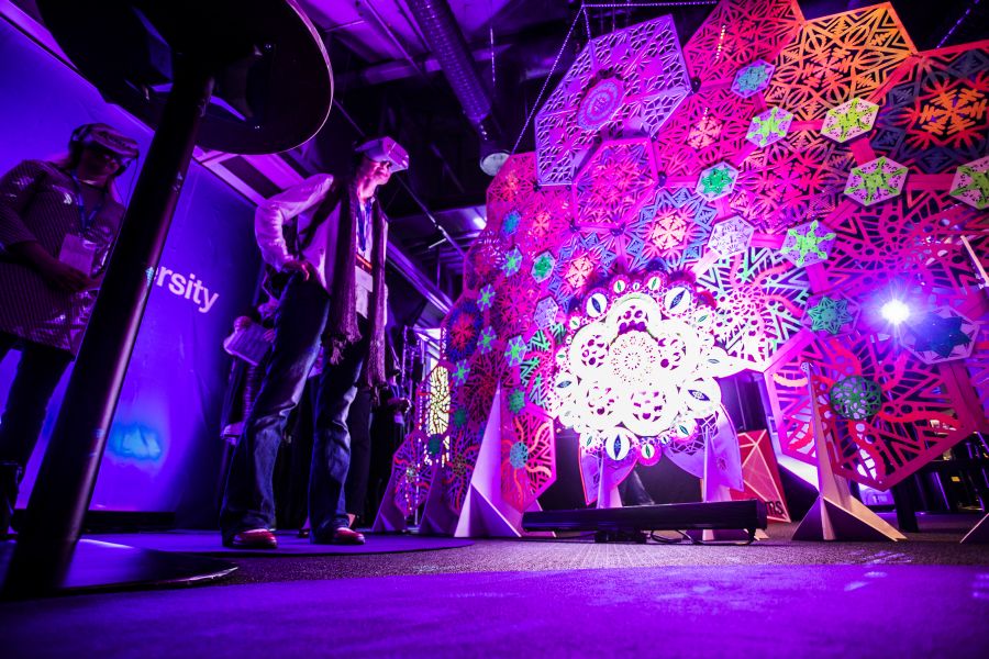 Virtuaalitodellisuudessa kävijät pääsivät kurkistamaan laboratorioiden sisään ja näkemään, millaista tutkijoiden arki on. Päätään kääntämällä ihmiset pystyivät VR-maailmassa tutkailemaan tiloja ympärillään ja vaihtamaan kätevästi esityksestä toiseen.