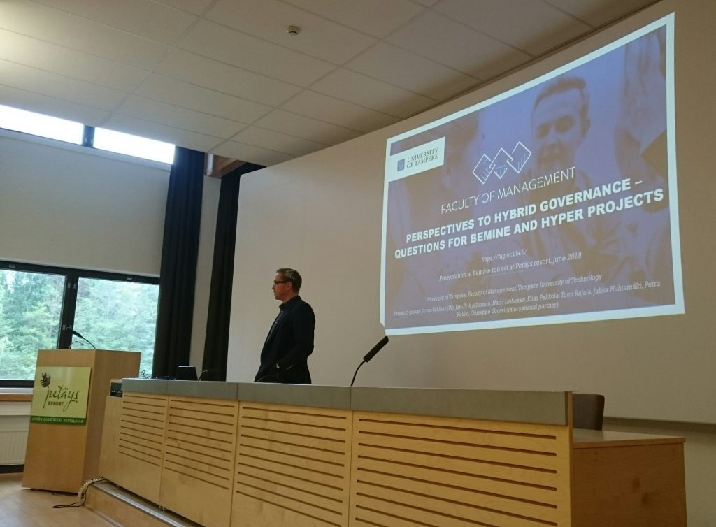 The idea of Vakkuri’s presentation was to explore the links between Hyper and Bemine projects, i.e. to discuss the impacts of hybrid forms of governance and organizations on sustainable urban policy-making. Bemine -project is a large research consortium funded by the Strategic Research Council, Academy of Finland. The mission of Bemine project is to analyze urbanization, in particular with an emphasis on sustainable urban development. Vakkuri is one of the project directors in Bemine (see www.bemine.fi).
