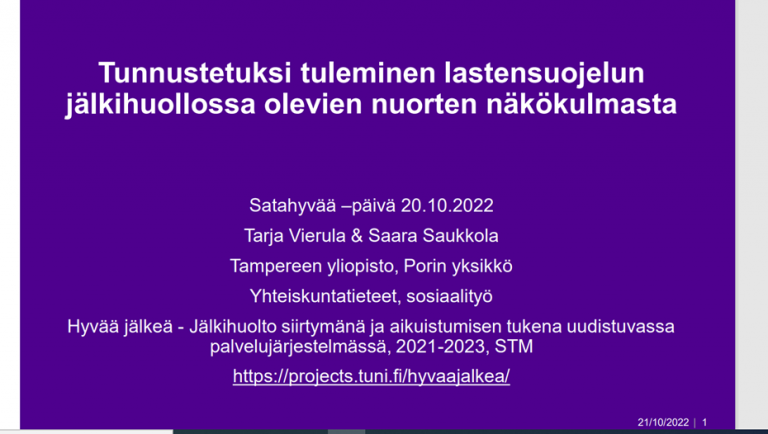 Nuorten oikein tunnustetuksi tulemisen kokemukset esillä Satahyvää-päivässä 20.10.2022 21.10.2022 Tapahtumat Uutiset