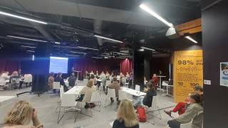 Tilaisuuteen osallistui runsaslukuinen joukko ihmisiä.