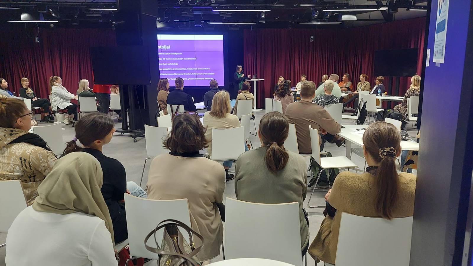 Tilaisuudessa kuultiin hankkeen tutkijoiden antoisa ja kiinnostava paneelikeskustelu, jossa tutkijat Johanna Hedman, Tuija Pakarinen, Auli Pohjolainen, Saara Saukkola, Tarja Vierula ja Niina Vuoristo esittelivät tutkimustuloksia nuorten, ammattilaisten sekä perhehoitajien näkökulmasta.