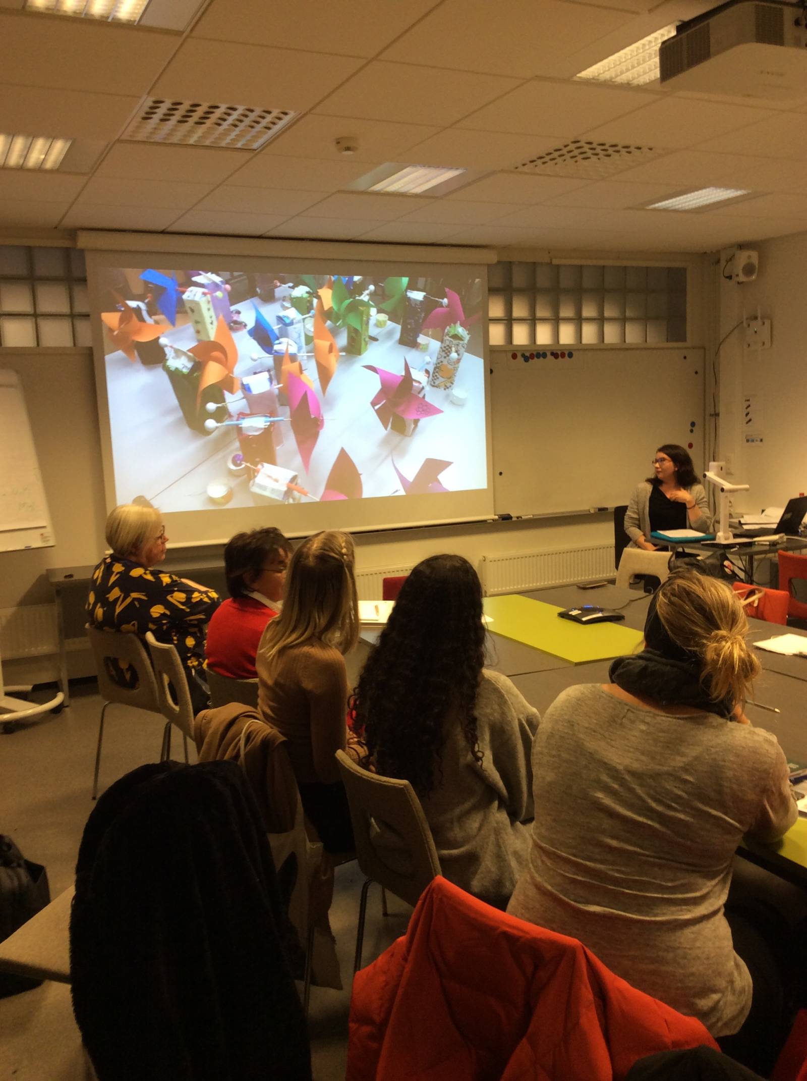 Aluksi katsottiin Virpi Yliverrosen luento lasten käsityön suunnittelun ohjaamisesta. Virpi hiljattain valmistunut väitöskirja löytyy täältä. Vaikka asia oli hankkeen konkareille jo pääosin tuttua, luento auttoi käsitteellistämään ja strukturoimaan omia tietoja.