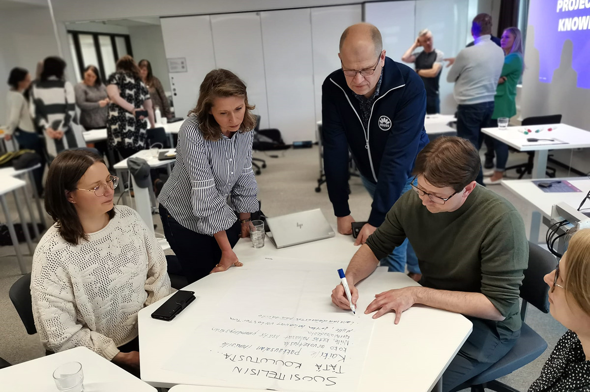 Esimerkkinä oman työroolin ulkopuolelta koulutus tarjosi mahdollisuuden tutustua mm. liiketoiminnan suunnitteluun, kiertotalouden liiketoimintamalleihin sekä innovointimenetelmiin. Samalla tutustuttiin ja testattiin digityökaluja ja sitä, miten niitä voidaan hyödyntää esimerkiksi innovoinnissa. Jähi alleviivasi tiimityöskentelyn voimaa ja antoi kiitokset asiantuntevalle opiskelijaryhmälle.