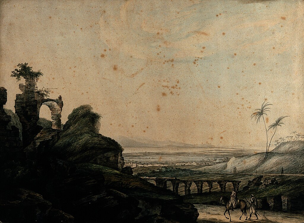 Kuva: Ruins at Carthage, with salt marshes in the distance, Tunisia. Watercolour by Charles Gülin, 1778. Wikimedia Commons.