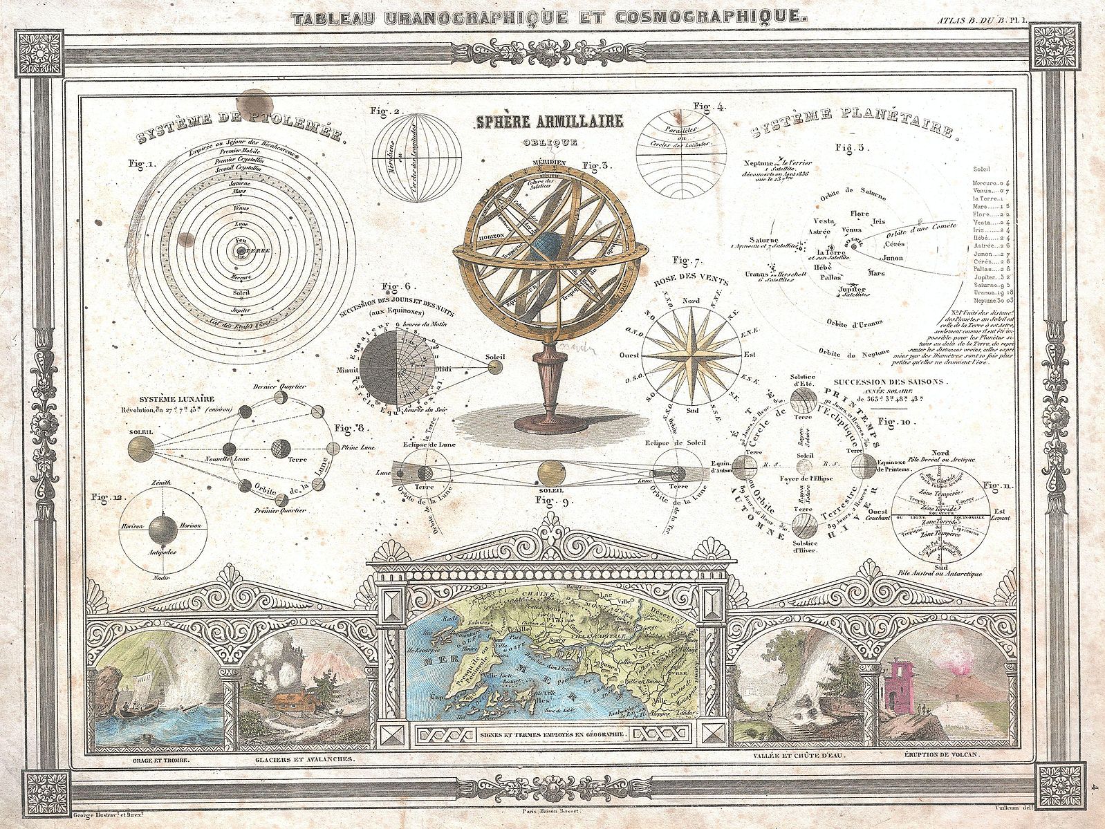 Kuva: Tableau Uranographique et Cosmographique (M. Vuillemin, 1852). Wikimedia Commons (https://commons.wikimedia.org/wiki/File:1852_Vuillemin_Astronomical_and_Cosmographical_Chart_-_Geographicus_-_Cosmographique-vuillemin-1852.jpg).