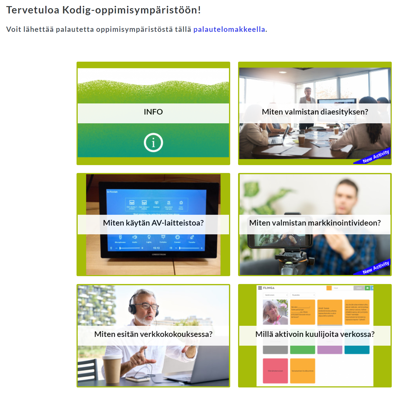 Voit käydä tutustumassa oppimisympäristöön ja vaikuttamassa oppimisympäristön kehittämiseen antamalla palautetta siitä. Löydät oppimisympäristön tästä linkistä.