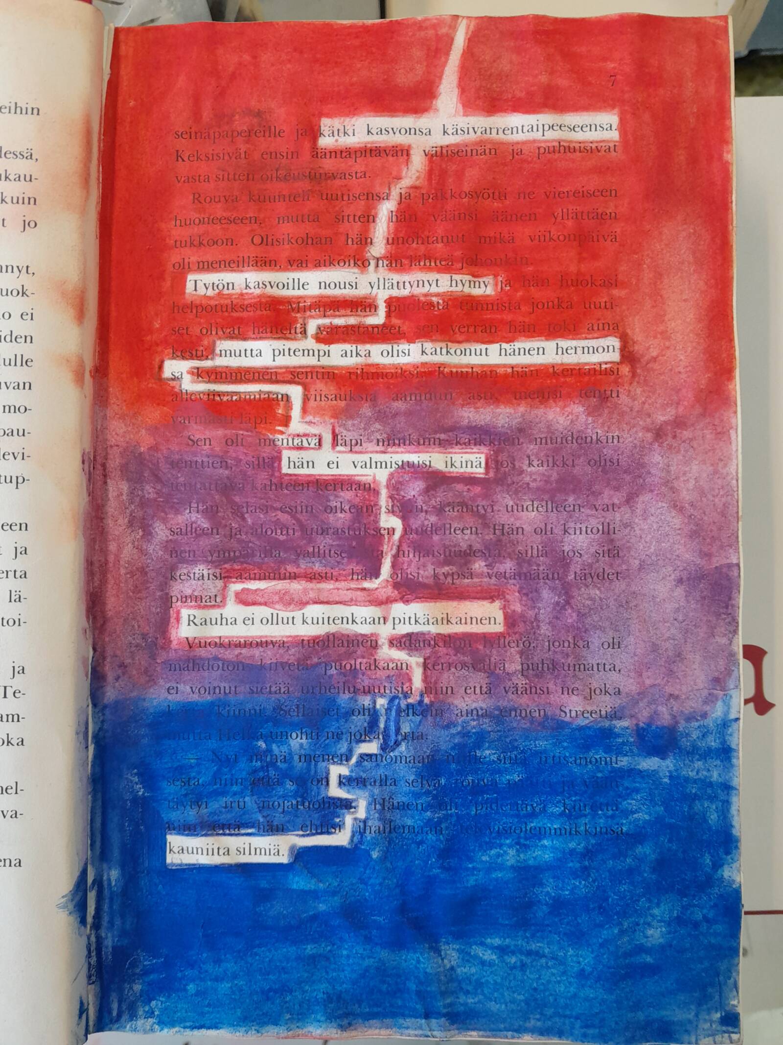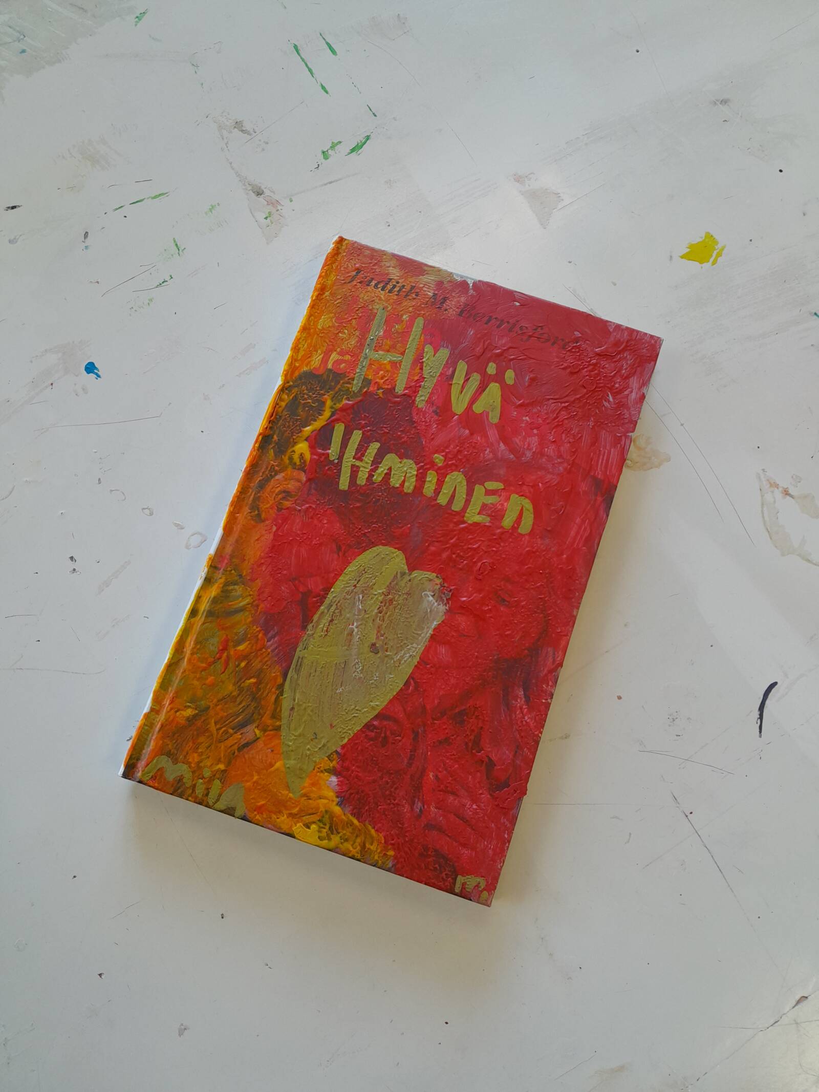 Hoivatien lastensuojelun erityisyksikön taidetyöpajassa tehty oma kirja. Kukin tekijä on muovannut omasta kirjastaan mieleisensä kirjoittamalla, maalaamalla, repimällä, liimaamalla ja esimerkiksi suttaamalla. Kuvaaja Marita Oja.