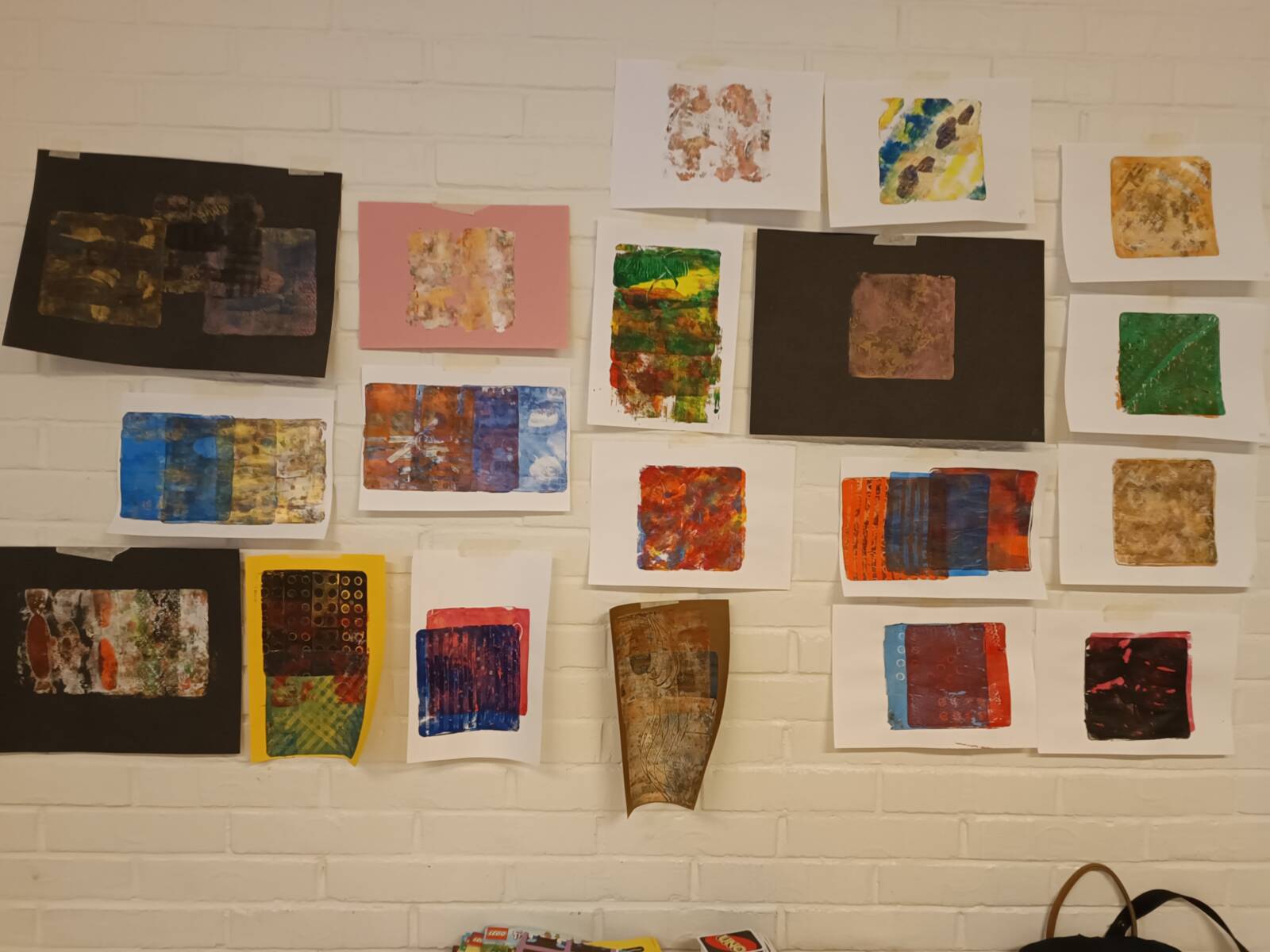 Taidetyöpajassa tehty ”Ei mun sipsit on loppu” -teos. Kuvaaja Aino Granlund.