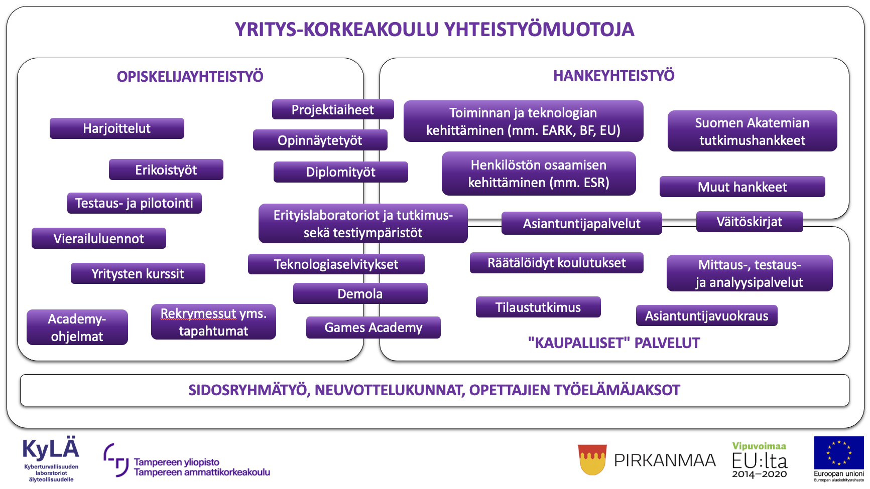 Tarkempaa tietoa erilaisista yhteistyömuodoista löytyy Dependable Systems -sivustolta: https://research.tuni.fi/dependablesystems/yhteistyomallit/.