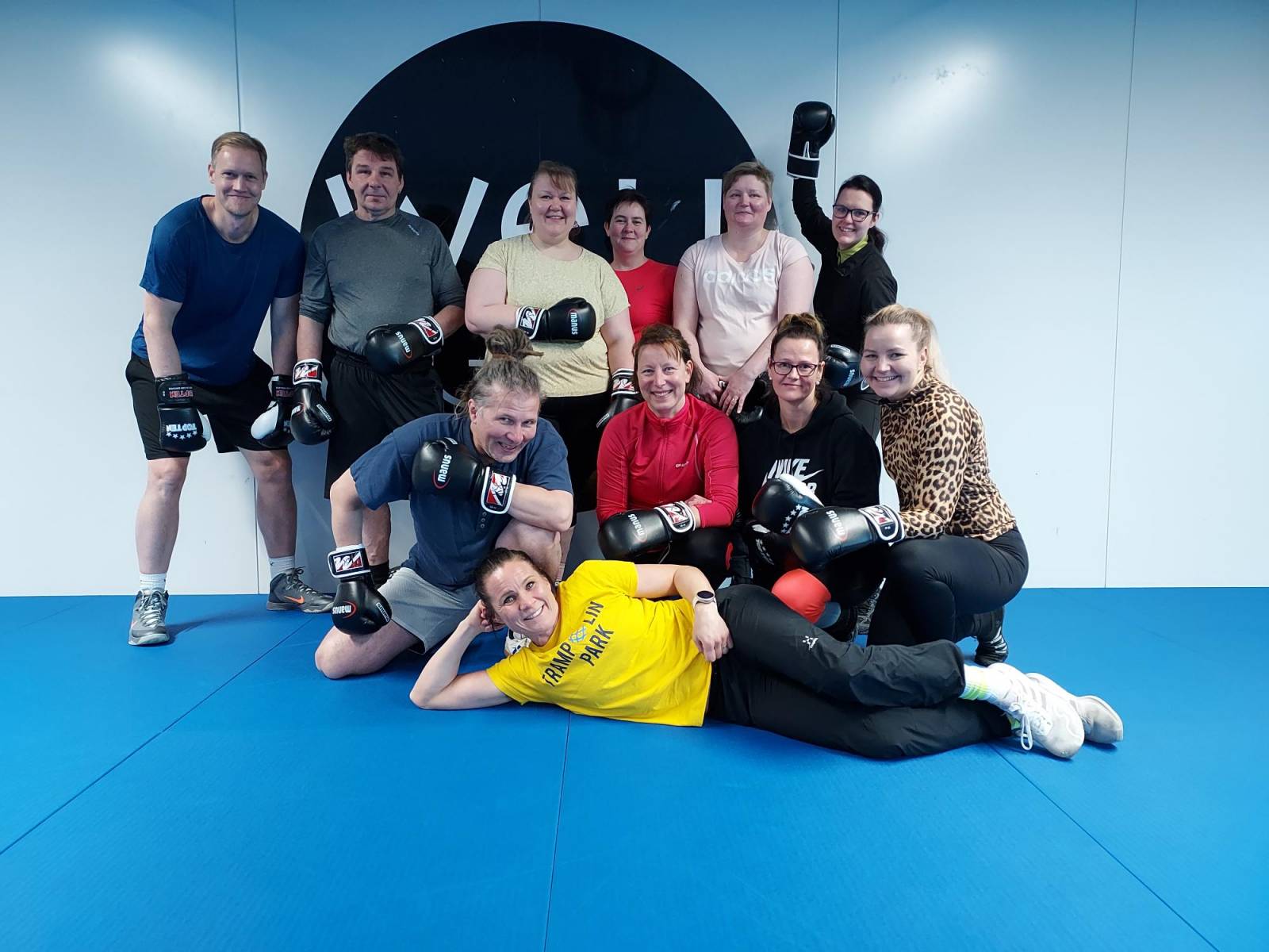 Hikipisaroilta ei monessakaan lajissa vältytty. Mm. innostavalla ja vauhdikkaalla Mira Potkosen pitämällä kuntonyrkkeily -tunnilla osallistujat saivat huomata kuinka tehokasta ja koko kroppaa kuormittavaa liikuntaa nyrkkeily on. Mainittakoon, että osallistujille tuli myös selväksi kuinka huippukuntoinen ohjaaja vielä kilpauran jälkeenkin on. Ja useat osallistujat löysivät kadonneen keskivartalon lihakset seuraavana päivänä 😊
