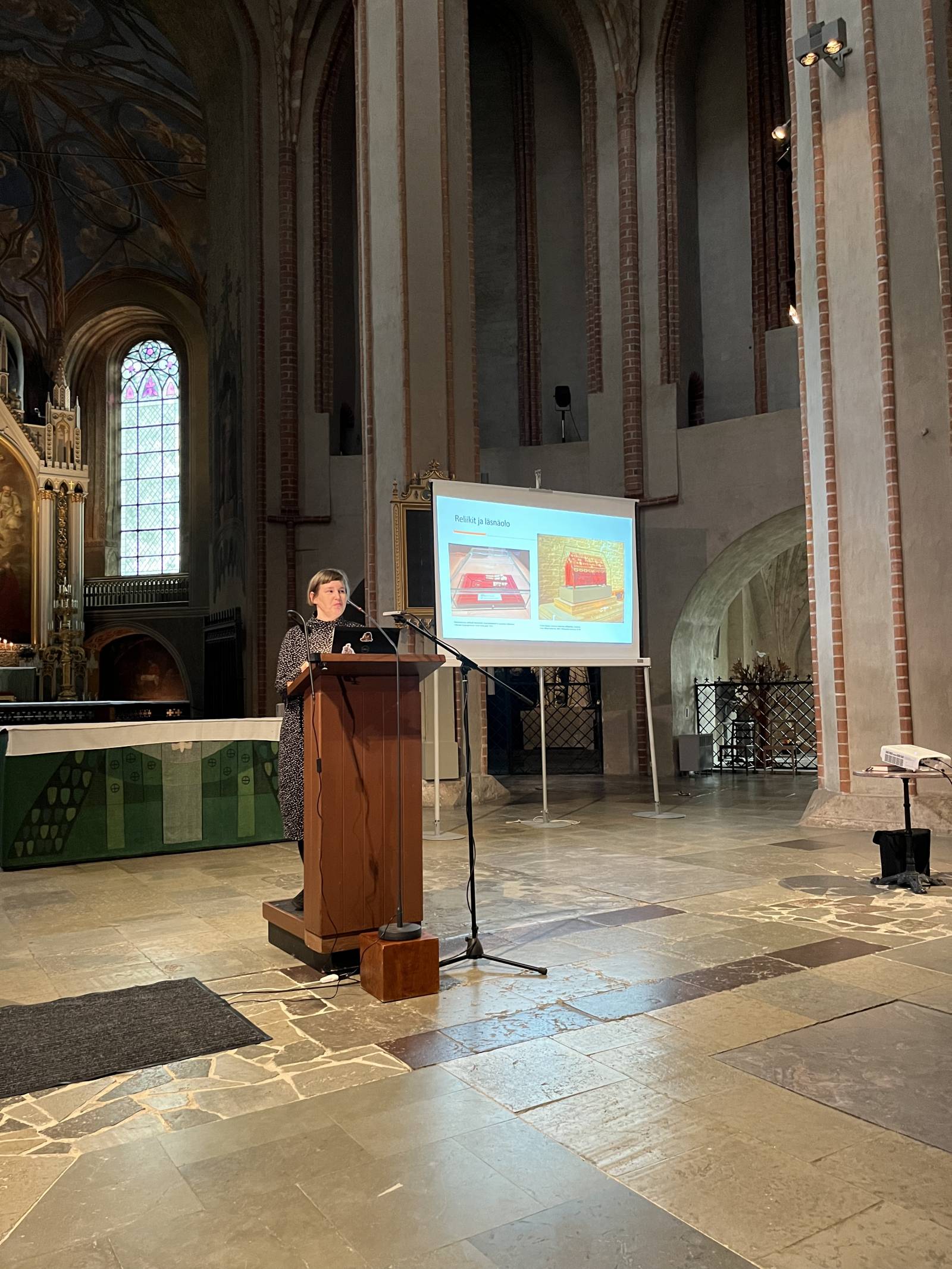 The project organized a seminar for wider public at the Turku Cathedral in October 6 with TUCEMEMS and the Cathedral parish. Sofia Lahti presenting her paper on Birgittine relics.