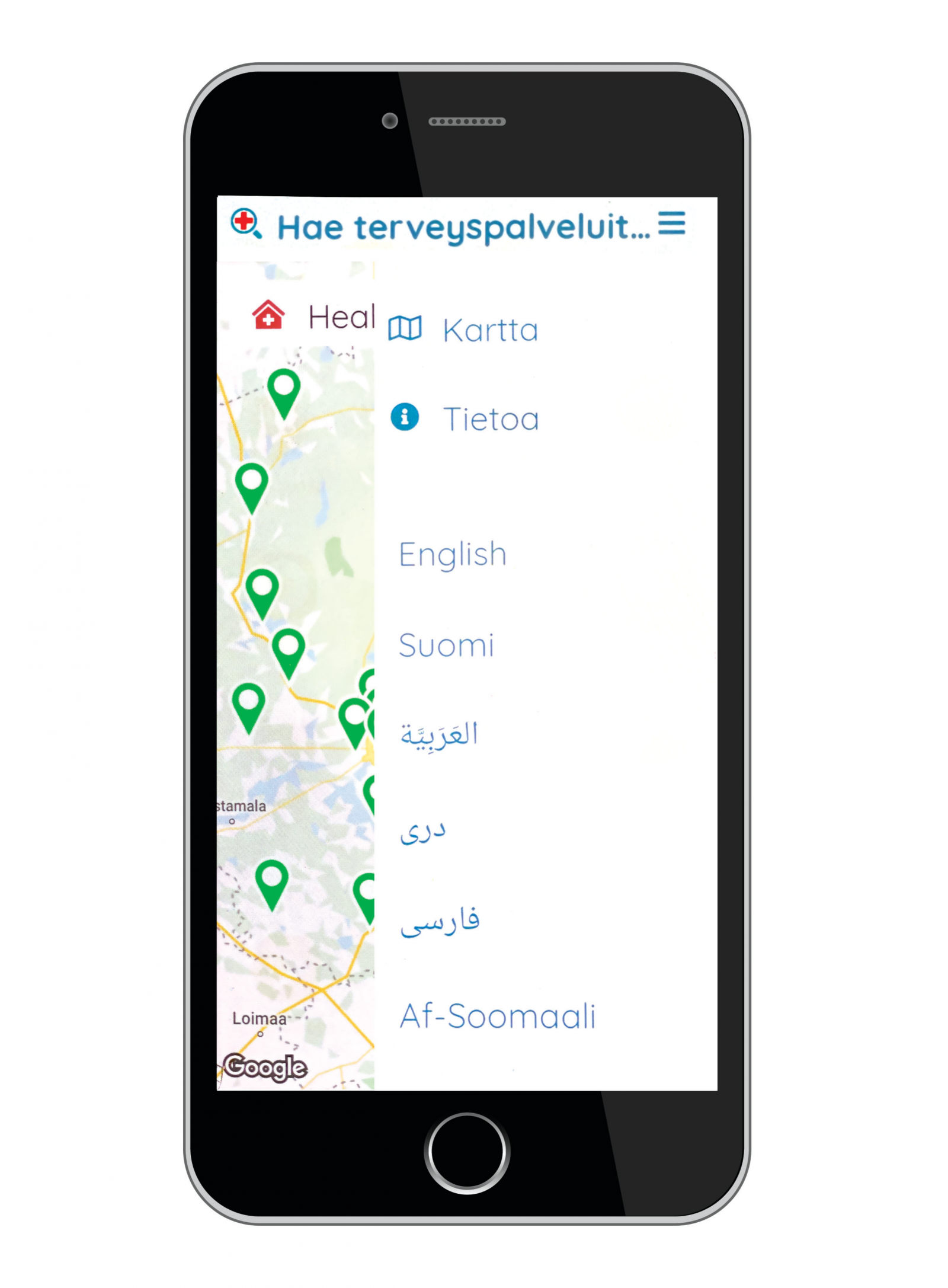 Tukeakseen terveyspalvelun käytön oppimista MATEAS-kartta-applikaatiossa on kerrottu suomalaisesta terveysjärjestelmästä. Tietoa-osiosta löytyvät lyhyet selitykset perusterveydenhuollosta, erikoissairaanhoidosta, yksityisestä terveydenhuollosta ja järjestöistä. Suomalaisen terveydenhuoltojärjestelmän palveluita on myös avattu. Terveysaseman, sairaalan, synnytyssairaalan, hammaslääkärin, neuvolan ja mielenterveyspalveluiden käyttö on kerrottu ytimekkäästi. Erilaisten järjestöjen (esim. potilasjärjestöt, lapsiperheiden tai läheistensä menettäneiden tulipalvelut) toiminta-alasta ja -periaatteista on myös laadittu yleiset kuvaukset. Kartta-applikaatiossa on merkittynä ne Pirkanmaalla toimivat järjestöt, joilla on fyysinen toimipiste.