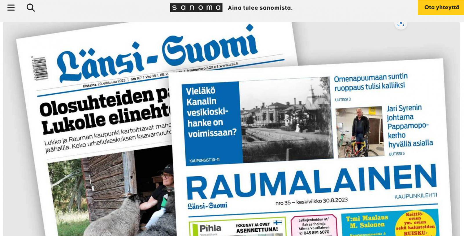 Kaupassa Sanoman salkkuun tulivat myös kaupunkilehti Raumalainen sekä Rauman Suorajakelu Oy.