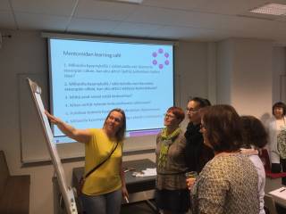 Perjantaina 8.6. pidettiin kevään viimeinen yhteinen mentorikoulutuspäivä. Päivän teemana oli mentori prosessin ohjaajana, johon Päivi Kupila ja Anne Jyrkiäinen johdattelivat. Teeman yhteydessä käsiteltiin hyvän ohjauskeskustelun luonnetta, esimerkiksi sitä, millaisia ovat hyvät keskustelua eteenpäin vievät kysymykset ja mitä tarkoittaa toisen kuuntelu. Lisäksi harjoittelimme coachaus-luonteista keskustelua. Lähdimme kesälaitumille yhdessä tekemämme mentorin räpin siivittämänä. Käsittelimme myös uuden työntekijän perehdyttämistä päiväkodinjohtaja Marika Pihkasen kanssa.