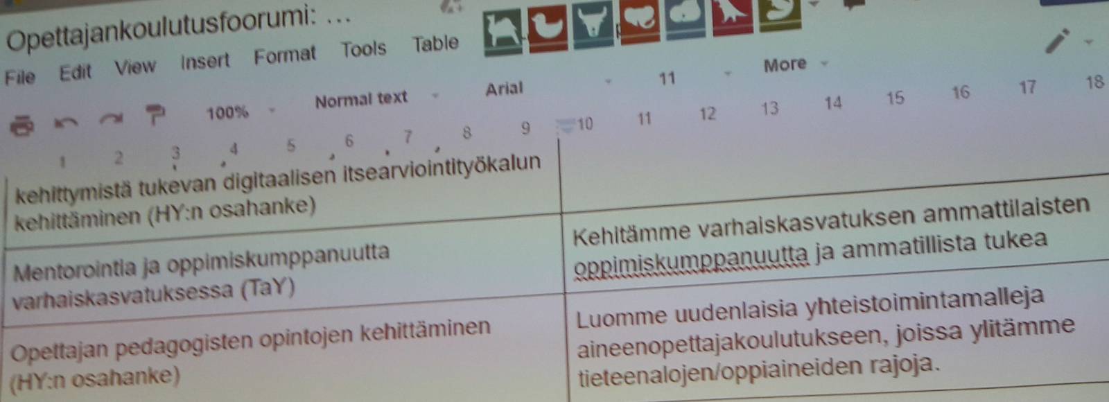Maanantaina 18.12. opetus- ja kulttuuriministeriön rahoittamien kärkihankkeiden edustajat tapasivat Opettajankoulutusfoorumissa Helsingissä. Seminaaripäivän aikana keskusteltiin vaikuttavuudesta, vuorovaikutuksesta sekä sitoutumisesta. Lisäksi kolme opettajankoulutuksen kehittämishanketta esittäytyi.