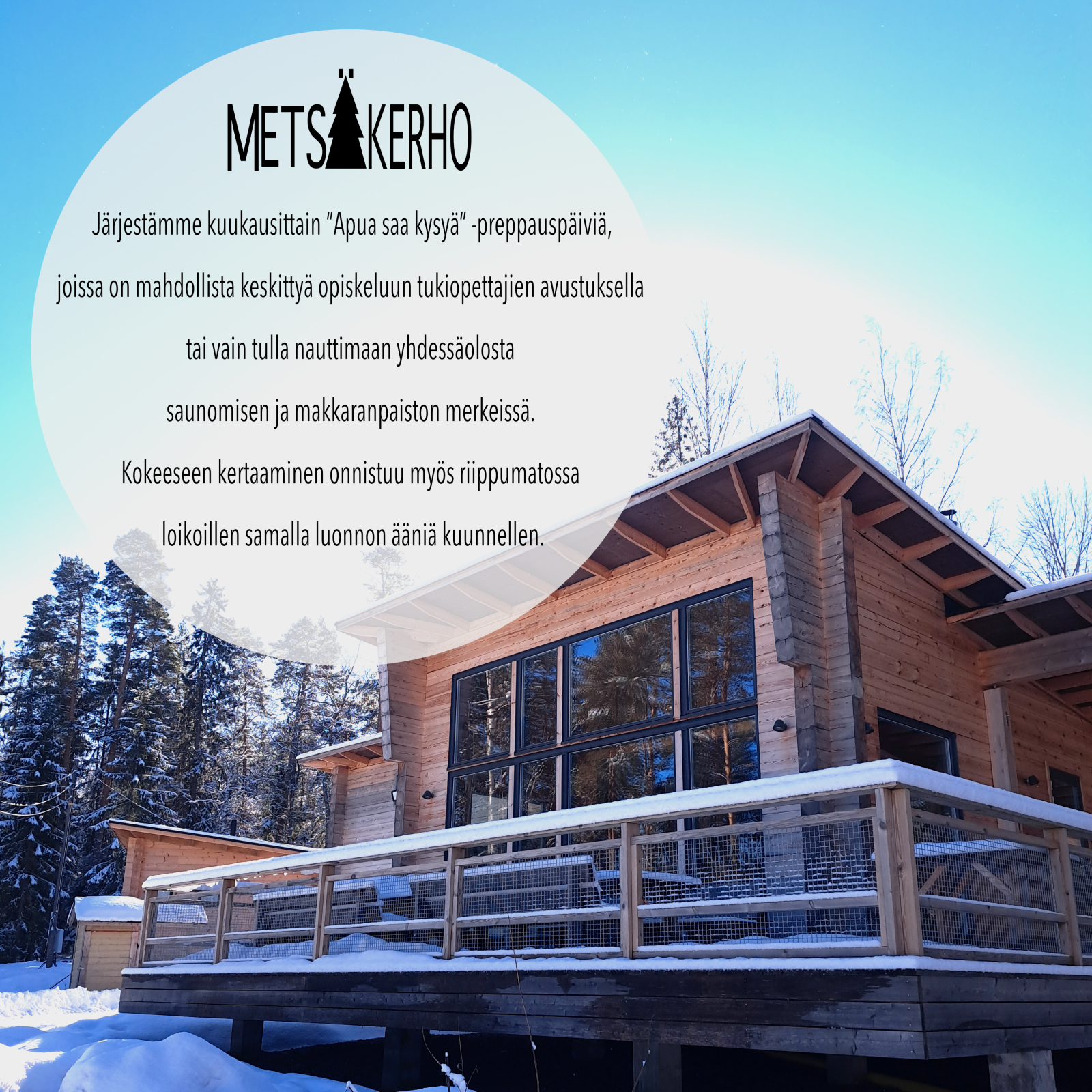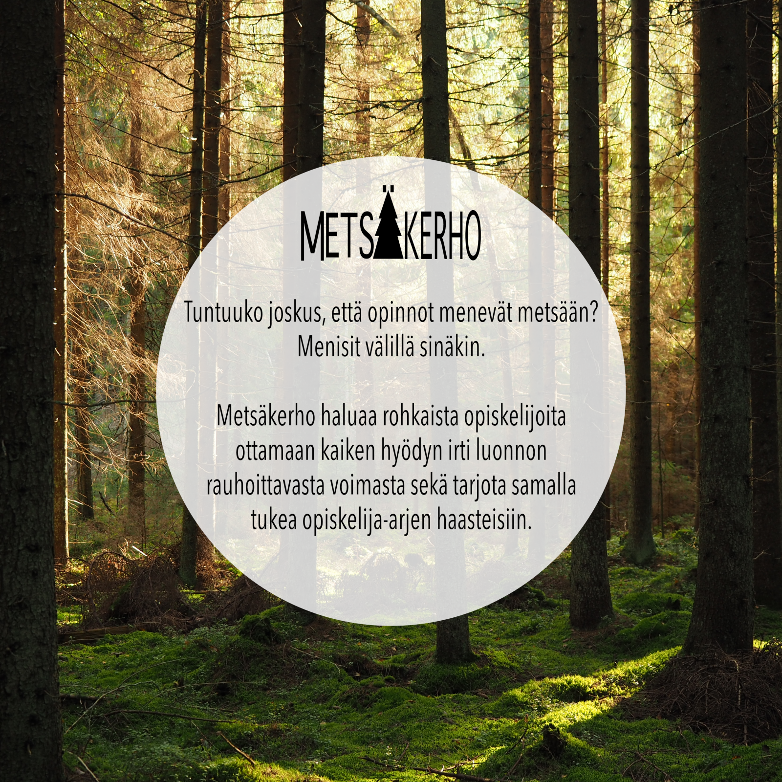 Metsäkerho toimisi Metsäreseptin useita toimintoja kokoavana tahona. Kerhon tarkoituksena on tarjota luontokokemuksia ja -aktiviteetteja, matalan kynnyksen keskustelutukea sekä sosiaalista kanssakäymistä. Tavoitteina on opiskelijoiden hyvinvoinnin parantaminen, luontosuhteen muodostumisen edistäminen, syrjäytymisen ehkäiseminen ja Metsäreseptin toiminnan jatkuvuuden turvaaminen. Ryhmän tekemän kyselyn perusteella suurin osa opiskelijoista kaipaa luontoa osaksi opintoja. Etenkin rauhallista yhdessäoloa kaivattiin sekä retkiä ja vapaaehtoista toimintaa. Keskustelutuen tarve sekä opiskelijoiden hyvinvoinnin huomioiminen nousivat kyselyssä myös esiin.