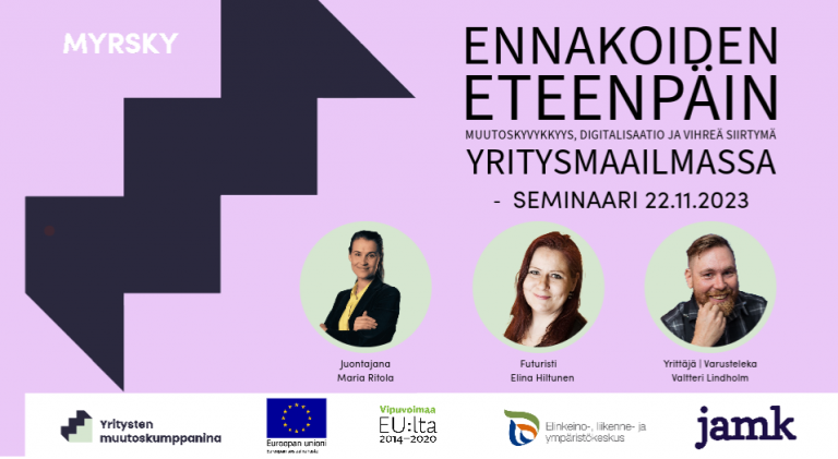 Ennakoiden eteenpäin – muutoskyvykkyys, digitalisaatio ja vihreä siirtymä yritysmaailmassa seminaari 22.11. 7.11.2023 Uutiset