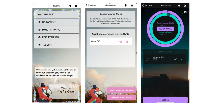 Ensimmäisiä sovelluksia tehdään syksyllä 2021 ja kehittämistä jatketaan seuraavana kahtena vuonna. Hankkeessa kartoitetaan nuorten palautetta kehitettävän pelillisen sovelluksen eri versioista ja seurataan myös sovelluksen käyttöä. Hankkeen päätoteuttaja on Tampereen ammattikorkeakoulu ja osatoteuttajana toimii Tampereen seudun autismiyhdistys. Lisäksi hanketta on tukemassa Pirkanmaan hyvinvointialue (Pirha) ja Valteri-koulu.