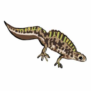 The marbled newt (Triturus marmoratus) can be encountered in the south west of Europe. Measuring between 12 and 18cm, the species live in dark and humid habitats, on land as well as in small water bodies. Scientific studies have shown that these newts uses stars to navigate to their breeding pools. If a pond in the species habitat is destroyed, the species can be offset by creating new ponds and transplanting individuals. The marbled newt has had a key role in conservation measures and compensations controversies, such as in the canceled airport project in Notre-Dame-des-Landes in France and in the high speed train line Bordeaux-Toulouse which had to be modified to protect the species.