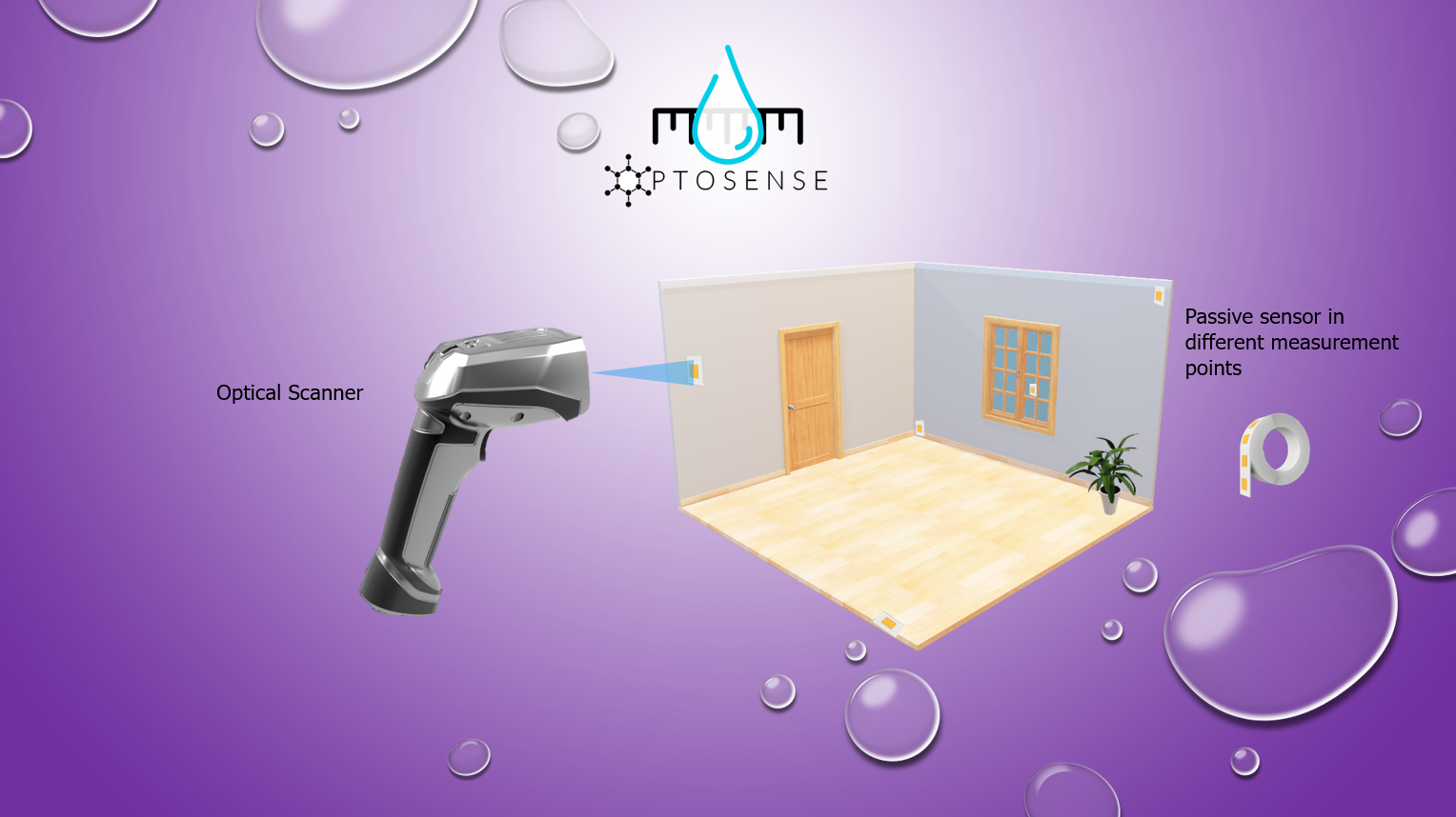 Optosense technology relies on optical readout of a humidity- and temperature sensitive thin film. This approach differs radically from what is available on the market and allows new solutions which: