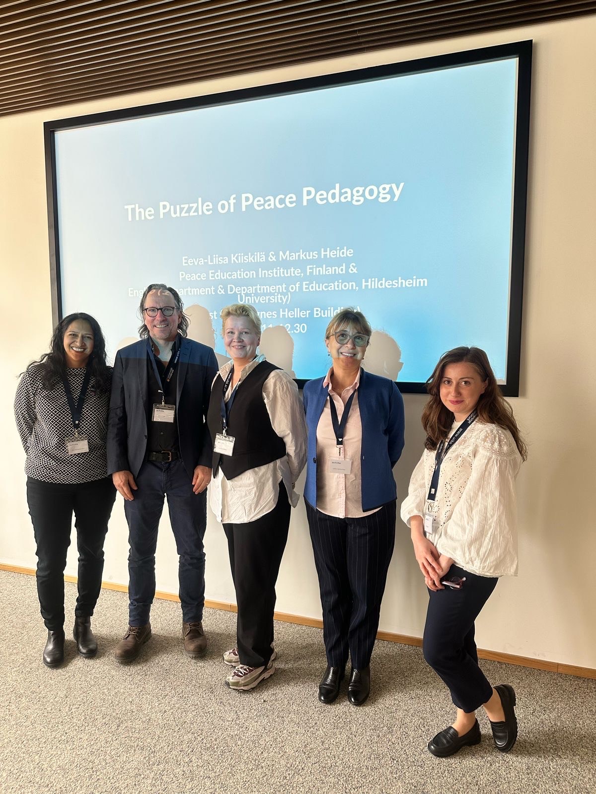 The workshop facilitated by Eeva-Liisa Kiiskilä (RKI) and Markus Heide and Viola Georgi (University of Hildesheim), The Puzzle of Peace Pedagogy, discussed peace education reflecting on understanding and critically examining peace and violence, guiding learners towards skills that promote sustainable peace, and exploring pedagogies that can be implemented in teacher training, schools, and youth work to foster nonviolent responses to conflict. Eeva-Liisa Kiiskilä says, “Peace education is education about peace, for peace and approaches are always context based. At the same time, it is highly relevant how we approach the topics and aims. The question asked in the workshop was, what are the modern and timely peace education pedagogies? This topic was discussed as well as good practices were shared.”