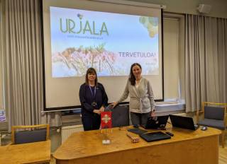 Hanke vietti toukokuussa leppoisat aamukahvit Urjalassa. Urjala on tunnettu yrittäjäystävällisenä kuntana ja kiertotalouden edistäminen on mukana heidän kuntastrategiassaan. Urjalassa on hyväksytty tänä vuonna uusi kuntastrategia 2026, jossa on mukana muuan muassa seudullisen ilmasto-ohjelman toimenpiteitä. Kuvassa hanke-esittelyä pitämässä PITS-hankkeesta Riitta Vihuri ja Piia Kanto.