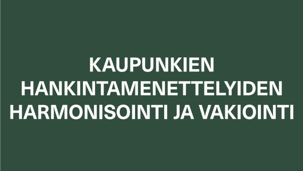Kaupunkien hankintamenettelyt ovat melko kirjavia. Saman kaupungin sisälläkin eri henkilöt saattavat tehdä hankinnan eri tavalla. Tässä selvityksessä on kartoitettu kuntien hankintakäytäntöihin ja toteutusmuotoihin liittyviä nykykäytänteitä ja niissä koettuja haasteita. Lopputulemana on esitetty, mitä hankinta- ja sopimuskäytäntöjen osalta on mahdollista vakioida ja harmonisoida eri kaupungeissa, jotta samankaltaisissa tilanteissa eri kaupungeilla on samanlaiset menettelytavat tai sopimusehdot. Tämä helpottaa niin tilaajina toimivien kaupunkien viranhaltijoita kuin myös palveluntuottajina toimivia urakoitsijoita. Pidemmällä aikavälillä tämä tuo ennakoitavuutta osapuolten toimintaan.