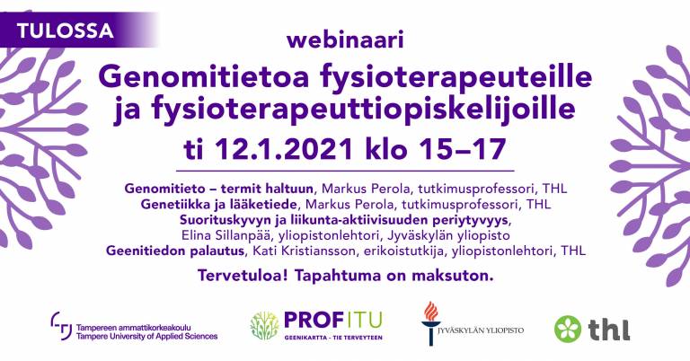 Genomitietoa fysioterapeuteille ja fysioterapeuttiopiskelijoille ti 12.1.2021 - webinaari 2.12.2020 Tapahtumat